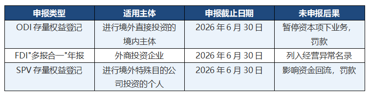 更重要的是,自2026年1月1日起,所有在2025年底前完成的FDI、ODI以及个人进行的SPV投资,都必须在2026年6月30日前完成存量权益登记或年度报告申报。