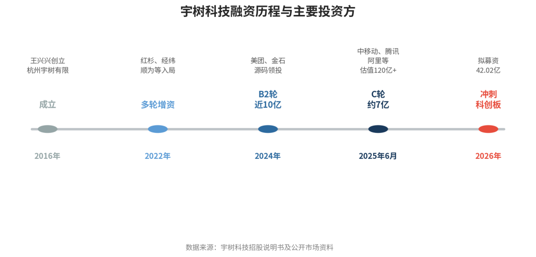 资本的注入必然伴随着股权的让渡。自2016年成立以来,宇树科技经历了多轮融资。特别是2024年的B2轮(近10亿)和2025年的C轮(约7亿),直接将其投后估值推高至120-127亿元。