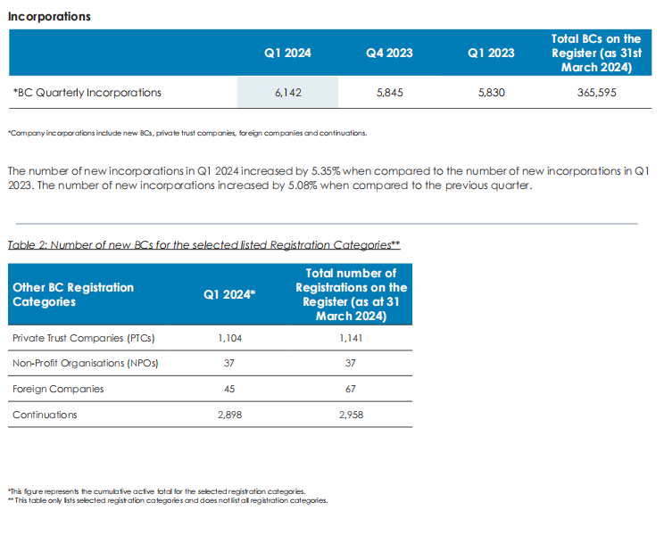 跨境资讯|英属维尔京群岛2024年第一季度商业注册报告