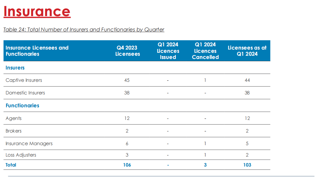 保险公司和保险功能人员数量在2024年第一季度保持稳定。
