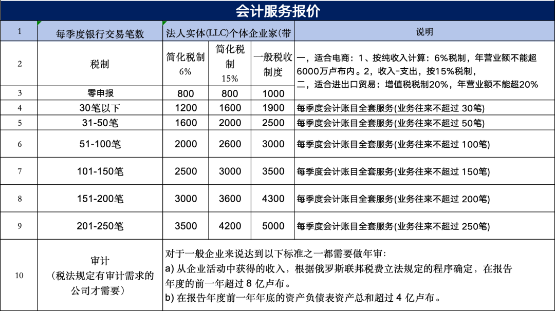 费用中不包含注册资本,可视情况,自行决定,最低1万卢布,公司账户开通后4个月内需要实缴到账。