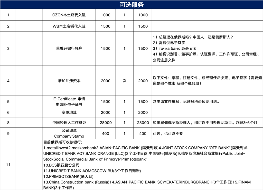 备注:如果客户不想要俄罗斯当地经理人,那也可以用中国经理人,但需要给中国经理人办理工作签证,注册和开户的时候,中国经理人得过去俄罗斯亲自办理。