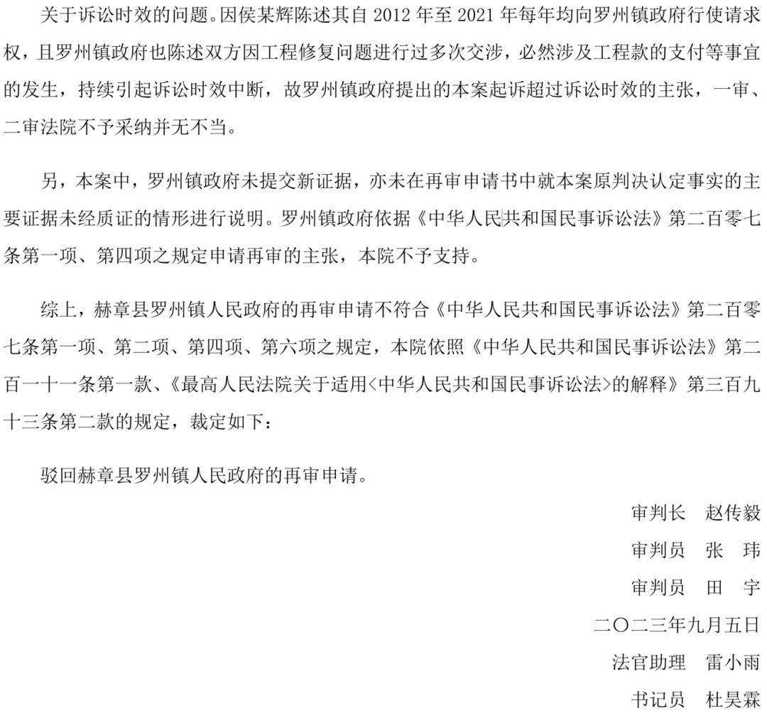 贵州法院驳回镇政府诉讼时效抗辩的判决书
