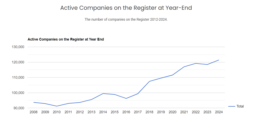 2017年起:进入快速增长通道,从约10万家跃升至2024年的12万余家。此阶段爆发的核心驱动因素的是全球跨境投资回暖,以及中概股、港股IPO热潮中“开曼架构”的广泛应用——众多企业通过设立开曼豁免公司作为上市主体,实现资本全球化配置。