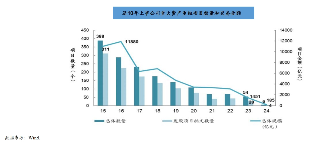 2024年4月,国务院发布《国务院关于加强监管防范风险推动资本市场高质量发展的若干意见》(简称新“国九条”),明确提出削减上市公司“壳” 资源价值(管制)、加大并购重组改革力度、活跃并购市场等具体要求。
