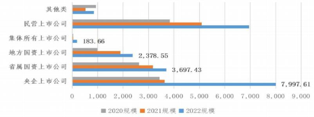 国央企成为市场主力军, 2022年国有上市公司全年发起的资产收购交易规模达到1.43万亿元,占市场总额的65%。作为国企改革三年行动的收官之年,2022年从央企到地方国资并购交易均有明显提速,交易规模均达到了近三年的峰值。其中,央企上市公司并购交易规   模有显著涨幅,从2021年的3,600亿元激增至8,000亿元,实现了翻倍。