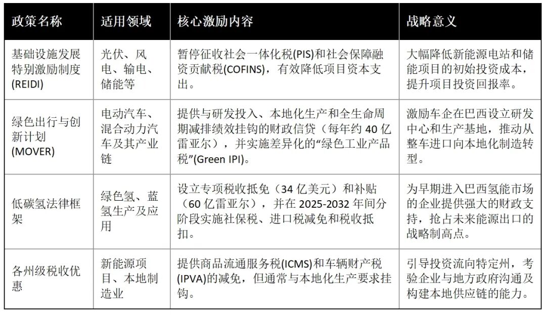 对于寻求进入巴西市场的中国新能源企业而言,理解并善用其独特的激励政策是成功的关键。目前,巴西已形成一个覆盖基础设施、绿色交通到前沿氢能的多层次、高强度的激励框架。