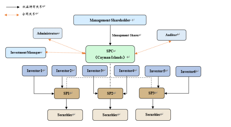 有限公司是私募证券基金(Hedge Fund或Mutual Fund)常见的基金组织架构,进一步地,伞形基金是公司型基金最常用的变体架构,开曼群岛SPC基金,新加坡VCC基金,香港OFC基金都是典型的伞形基金安排。以开曼SPC基金为例,其全称为独立投资组合公司(Segregated Portfolio Company,“SPC”),其作为独立法律实体的豁免公司,可以设立多个独立投资组合(Segregated Portfolio,“SP”),且每个SP之间及SP与SPC之间在资产和负债上都是独立的。实操中,在SPC主基金设立之后,可以随时以极快的速度和极低的设立价格发起设立不同的SP子基金。对于SPC型基金而言,SPC型基金的股东通常分为管理股东和参与股东,管理股东持有管理股份(management shares),享有投票权,参与股东持有参与股份(participating shares),仅享受收益权,不享有完全的投票权。在英美法系董事会中心主义的法律框架下,除公司法规定的或公司章程规定的由股东会行使的权利外,董事行使所有的公司权利,同时,董事还需要履行公司法规定的义务,包括但不限于保存、更新公司的股东名册、保存公司股东会的决议文件及在公司信息发生变更时及时在注册处进行信息更新等。此外,董事还可将基金的投资管理事宜委托给投资管理人。