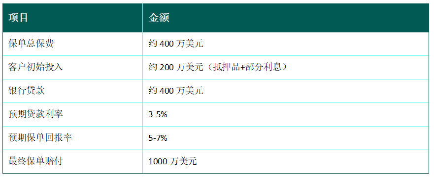 这是一个更为普遍的财富规划案例,展示了保费融资在实际操作中的财务杠杆效应。