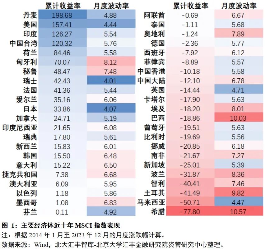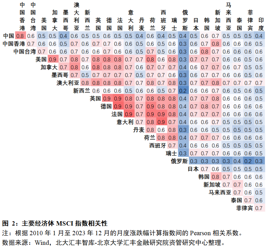 现处的资产价格周期:2023年,多国股票市场表现突出,许多发达经济体的债券市场也享有较高收益率。过去得益于中国经济高速增长,不进行全球布局也可以获得较高的资产收益。但目前中国处于低利率周期中,经济增速放缓,境内资产收益下降,必须加大海外资产配置。此外,从近十年的股指收益和波动看,多个市场的股指收益率较中国大陆高而波动率较中国大陆低,全球布局有助于增加投资组合收益、降低投资组合波动率(图 1)。